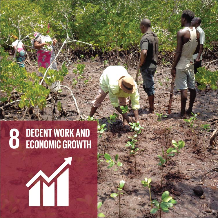These communities are educated on the environmental and economic importance of these ecosystems, and employed to grow seedlings, collect mangrove propagules, plant mangroves, and monitor the growth of the trees.